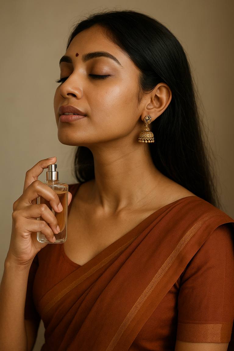 Spray the perfume on your neck, body, and on your pulse points.