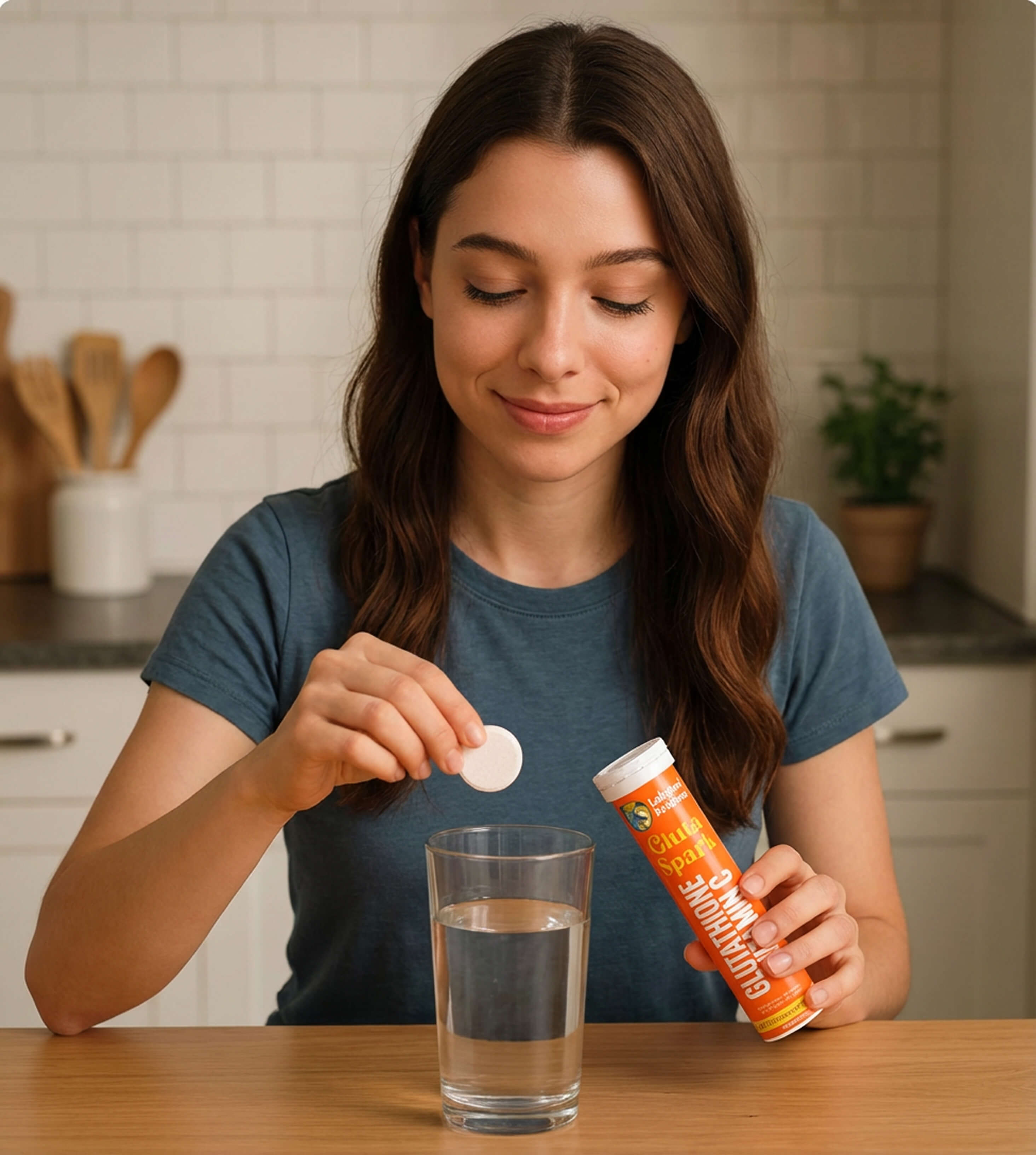Gluta Spark Vitamin C Effervescent Tablets combine Glutathione and Vitamin C to deliver daily antioxidant support for skin health and overall wellness. This fast-dissolving effervescent formula mixes easily in water, providing better absorption, a refreshing taste, and a gentle alternative to traditional tablets.
