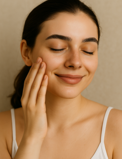 Apply a small amount of scrub to your face and gently massage your forehead, nose, and chin with circular strokes.