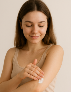 Add a coin size drop of lotion after bath to your hand particularly on rougher areas such as elbows and knees.